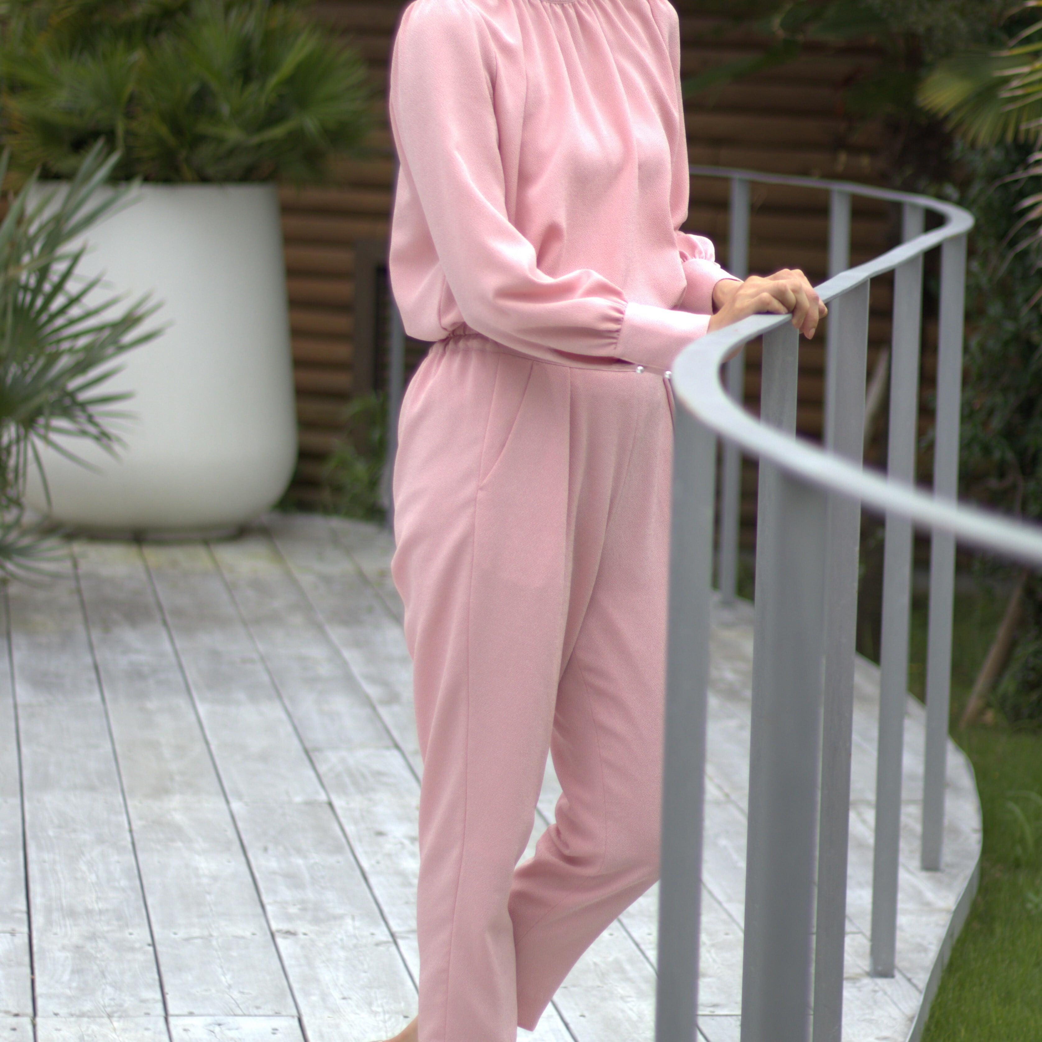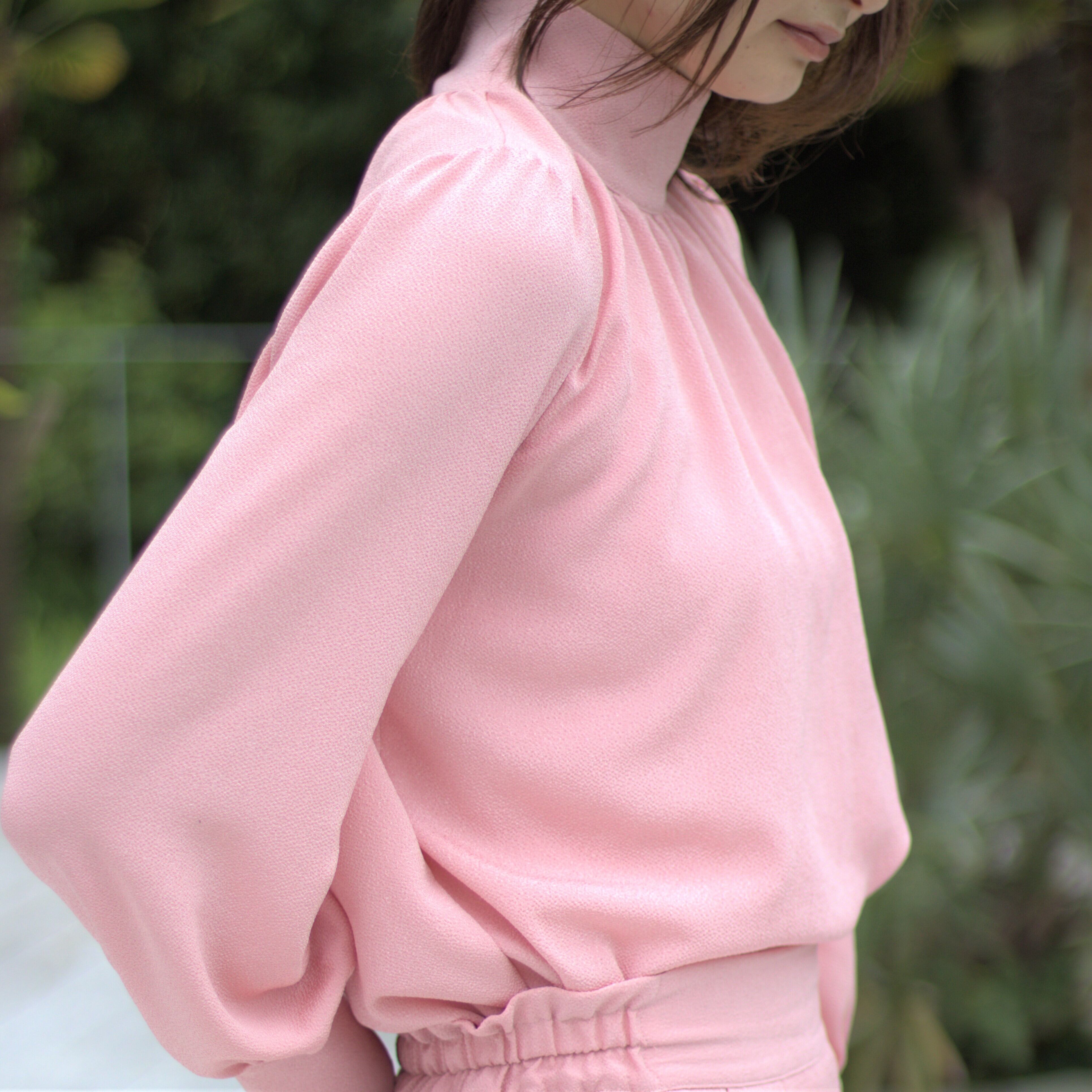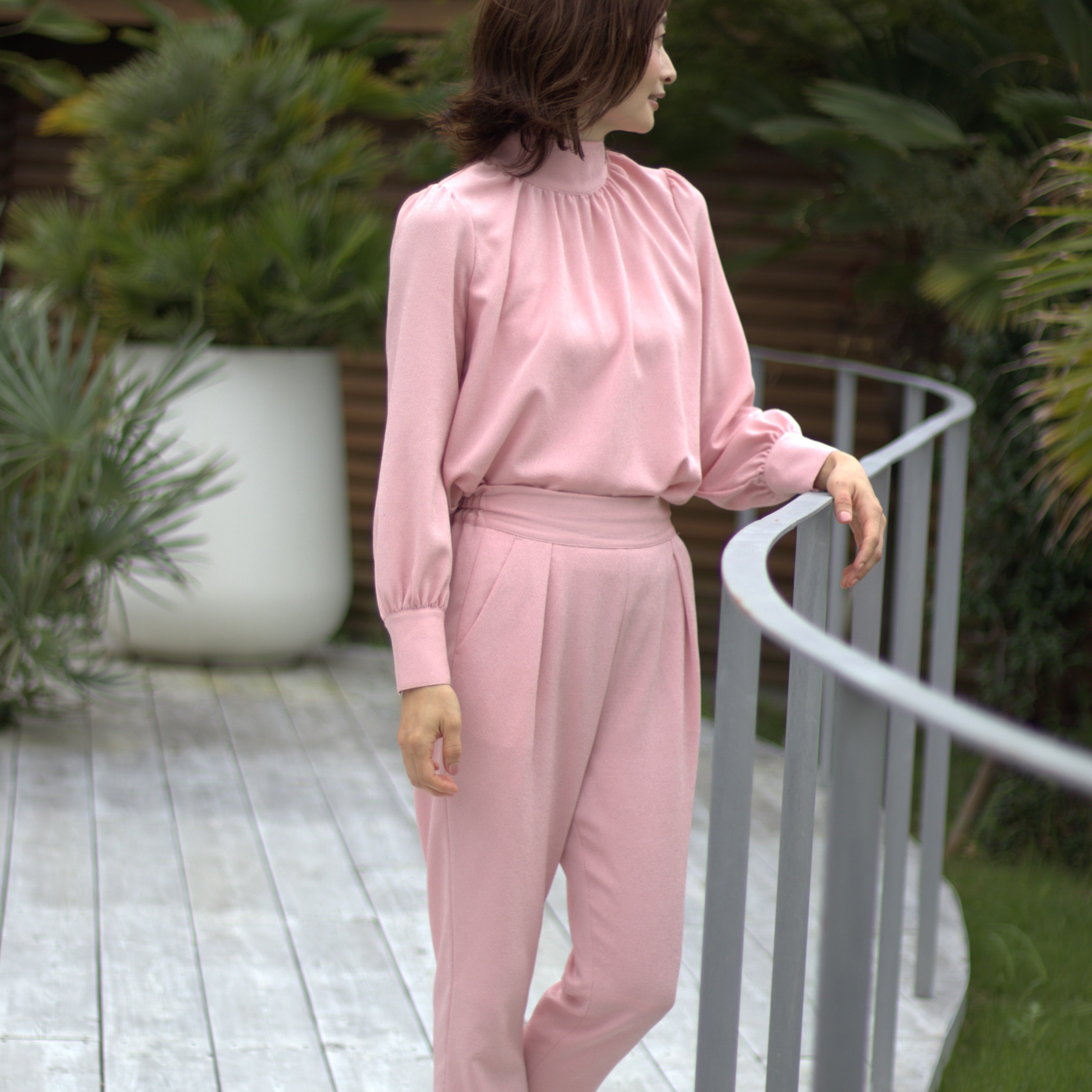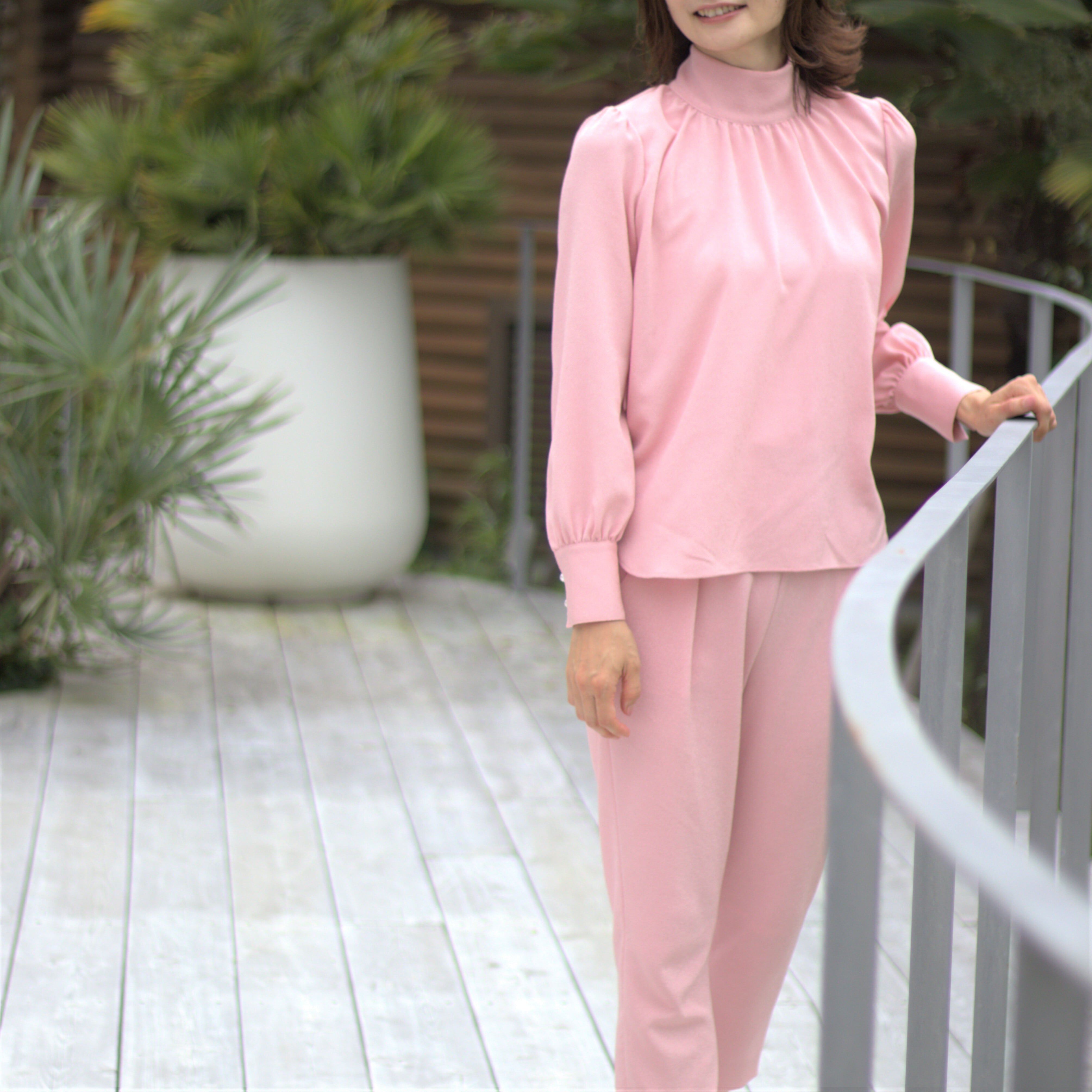 淡いピンク色のセットアップです。