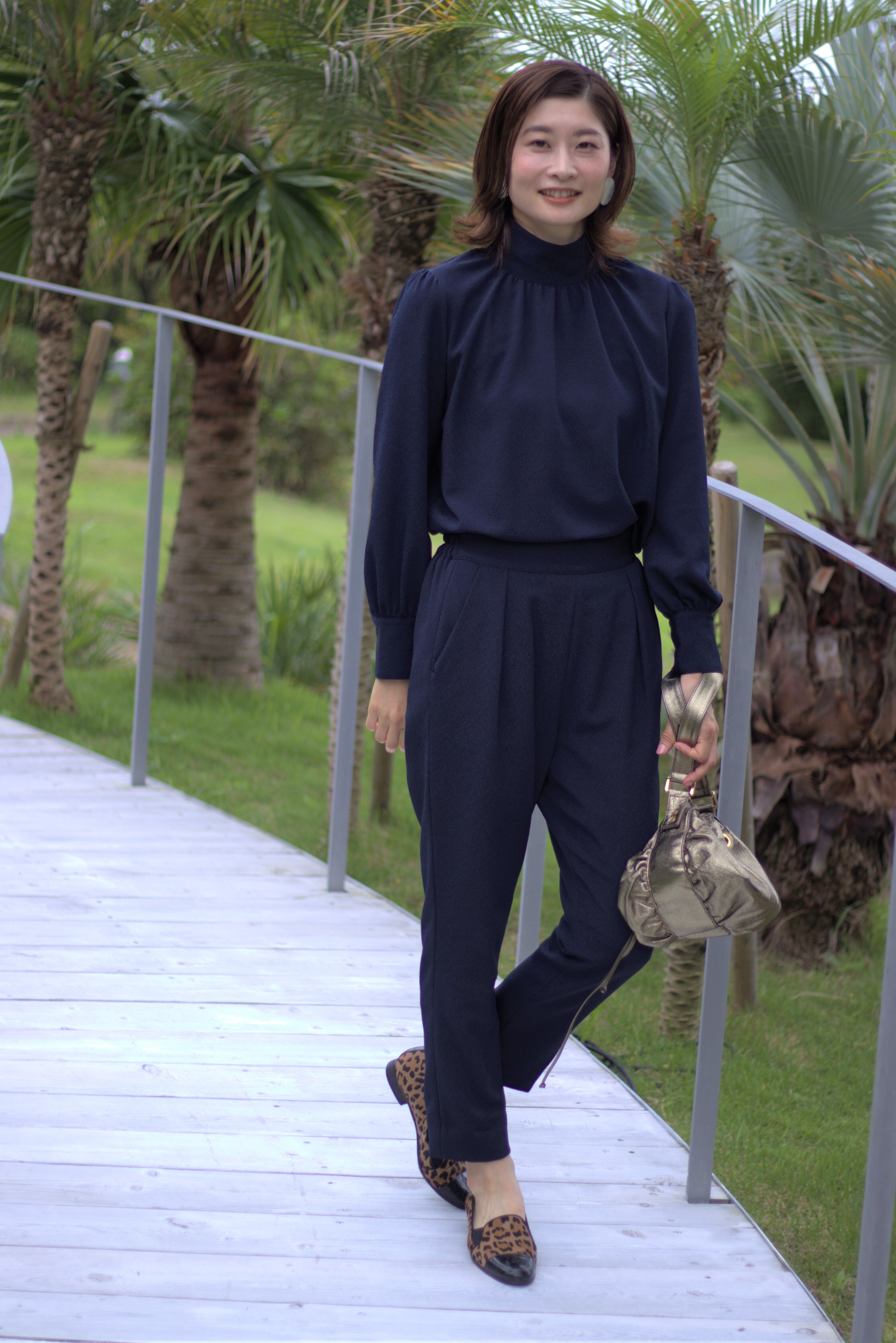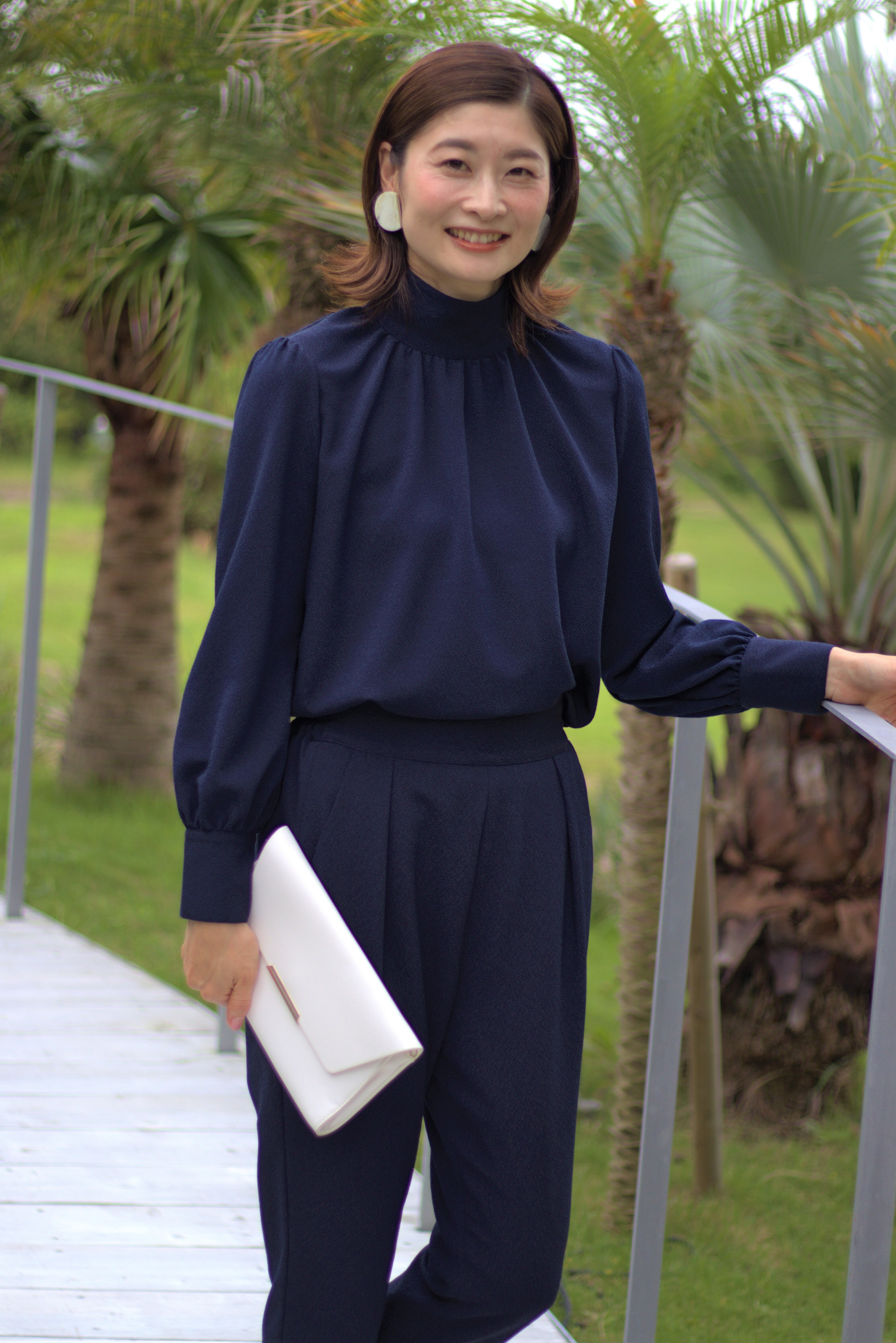 紺色のセットアップです。