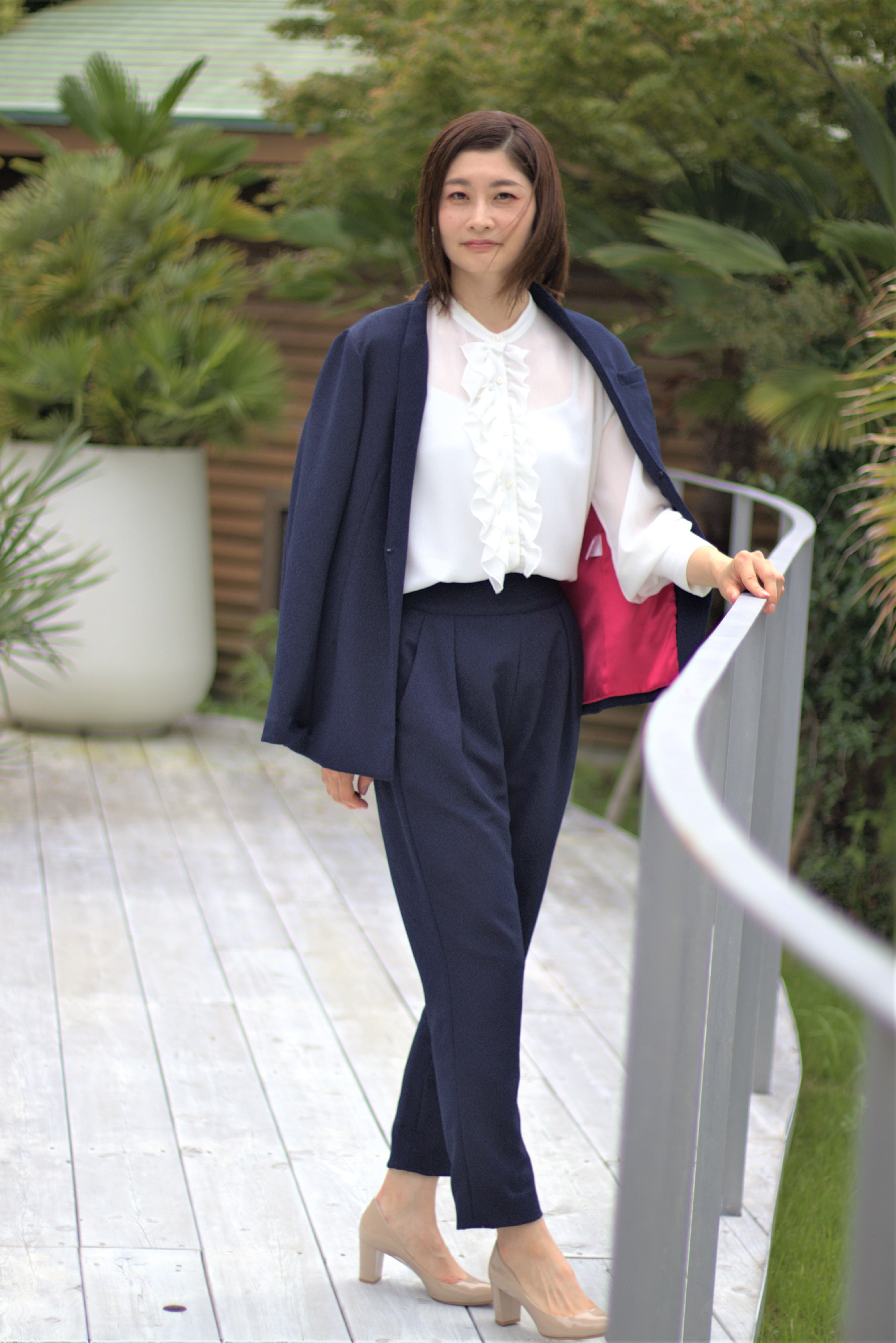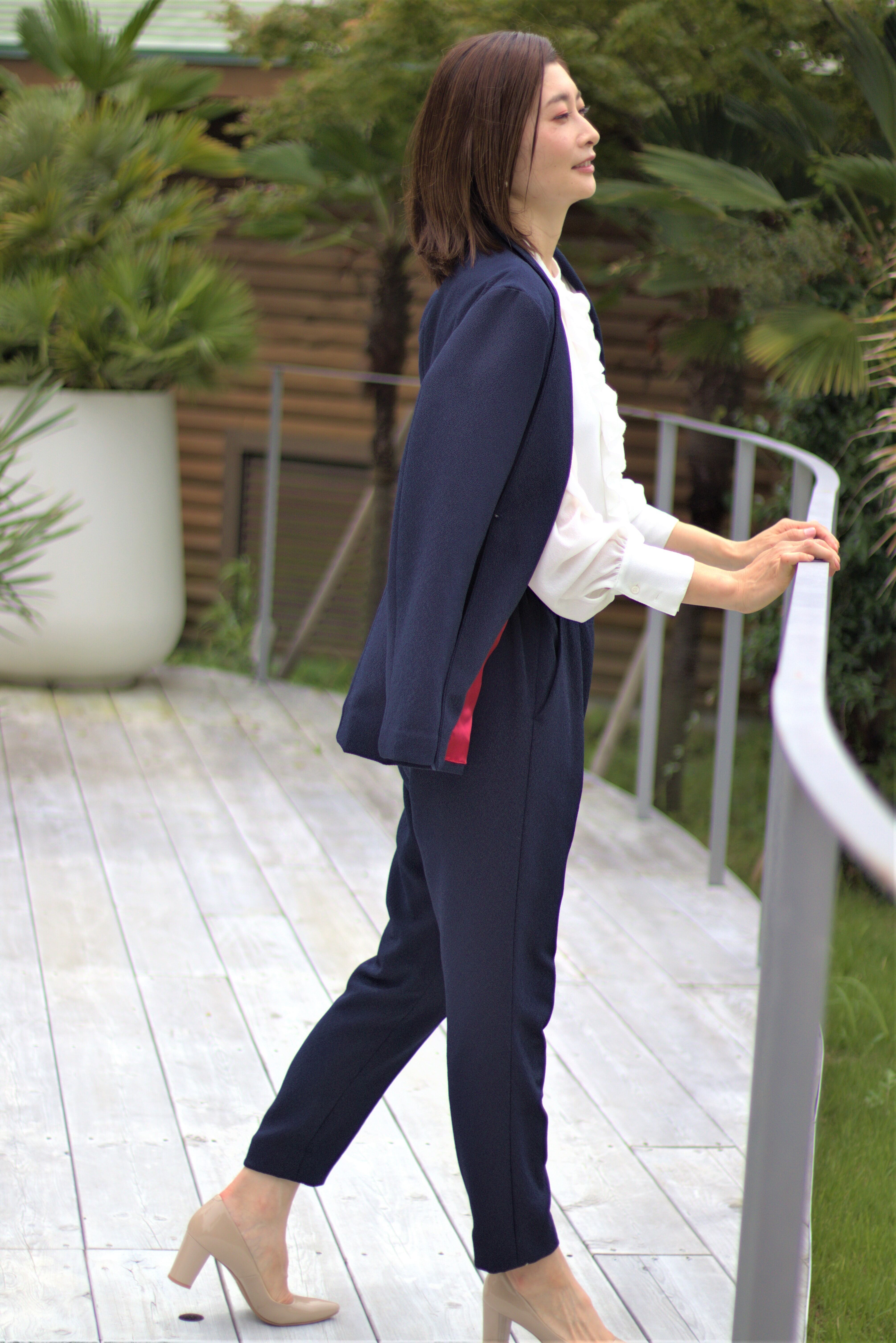ジャケットはかっちりしすぎずに羽織り感覚で着ることができ、カジュアルにもオケージョンにも対応できます。