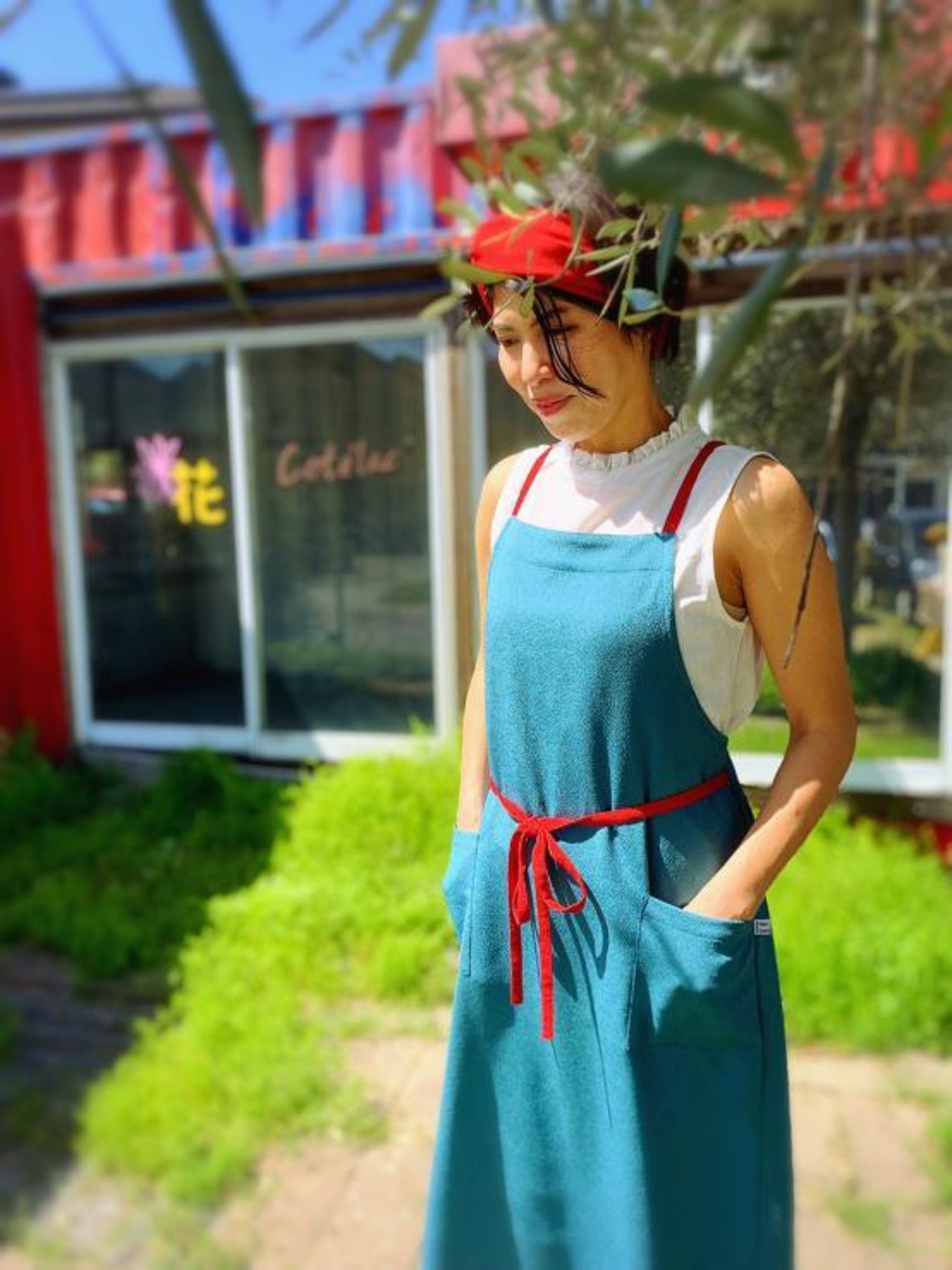 京都の伝統織物である「丹後ちりめん」を使用したエプロン。(Made in kyoto.)